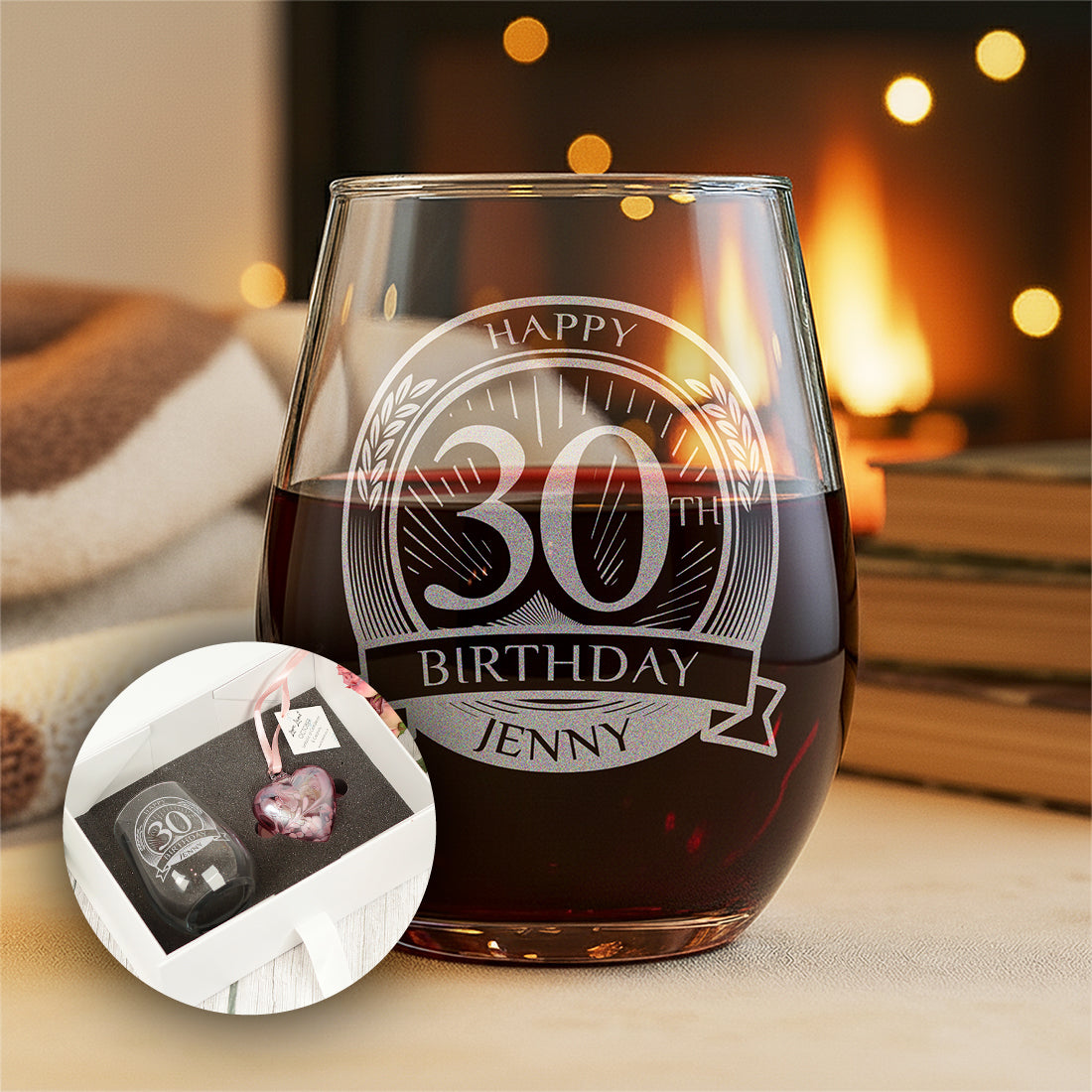 30th Birthday Stemless Glass and Birthstone Heart Gift Set