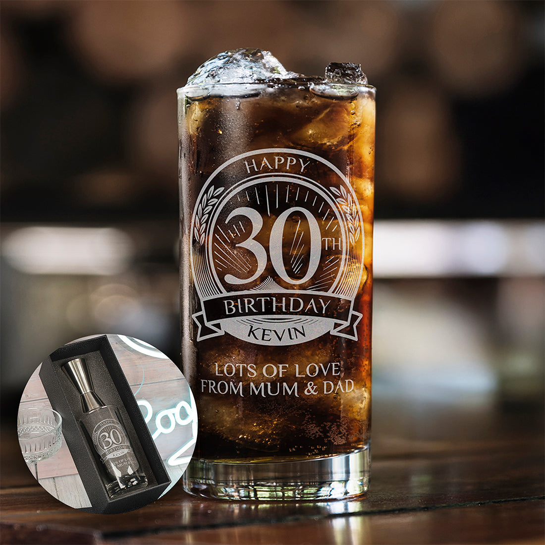 30th Birthday Diamante Embellished Gin Glass and Bath Bomb Gift Set