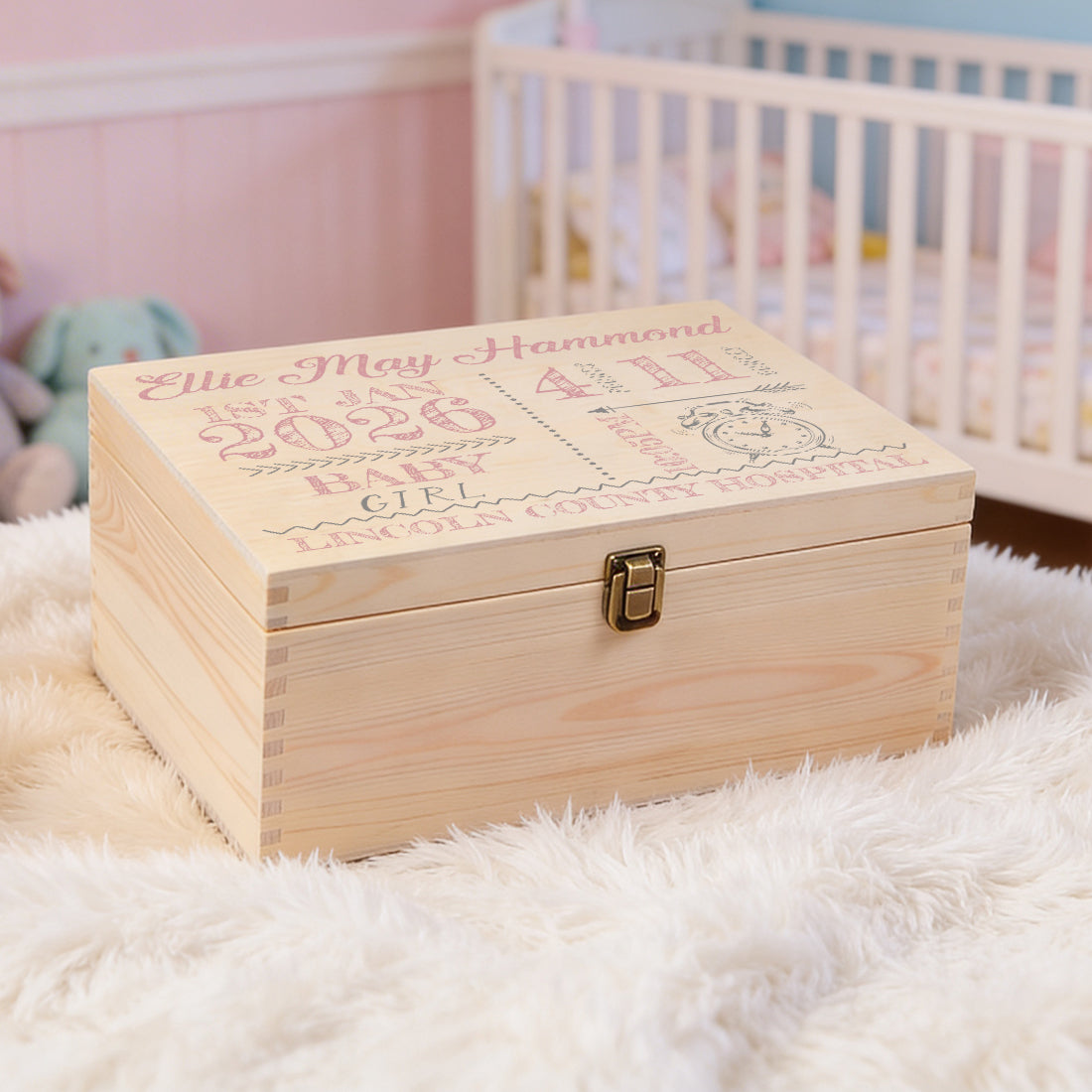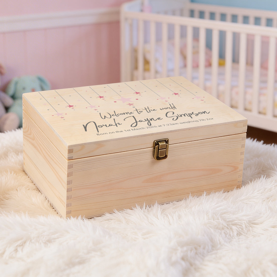 A personalised baby keepsake box makes a lovely new baby gift for the new parents to store all their memories and trinkets as their little one grows up. Sure to be cherished in years to come and maybe even pulled out of the loft on their 18th birthday!