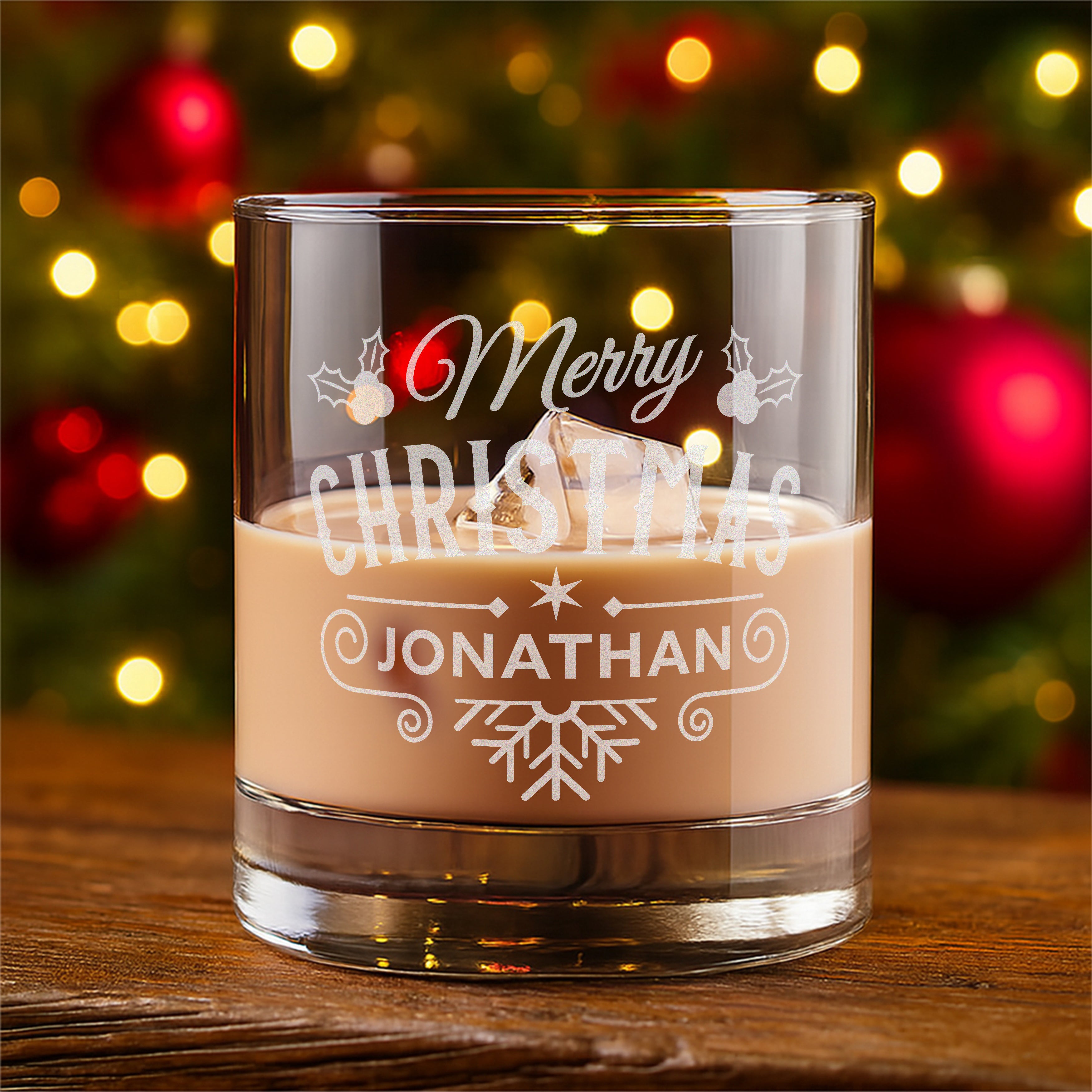 Christmas Holly & Snowflake Tumbler Glass with Gift Boxed Set