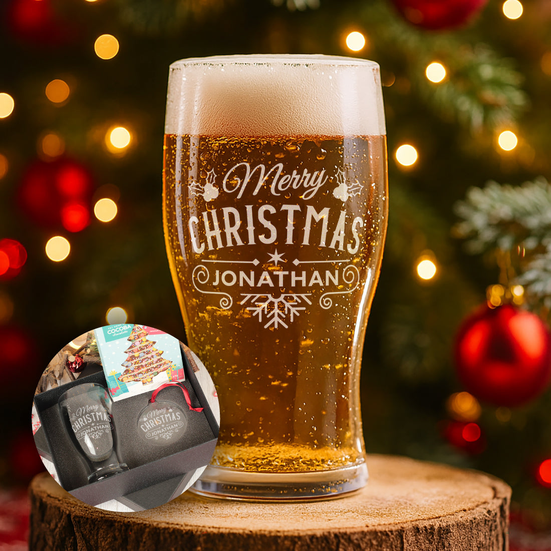 Merry Christmas Message Pint Glass and Gift Boxed Set