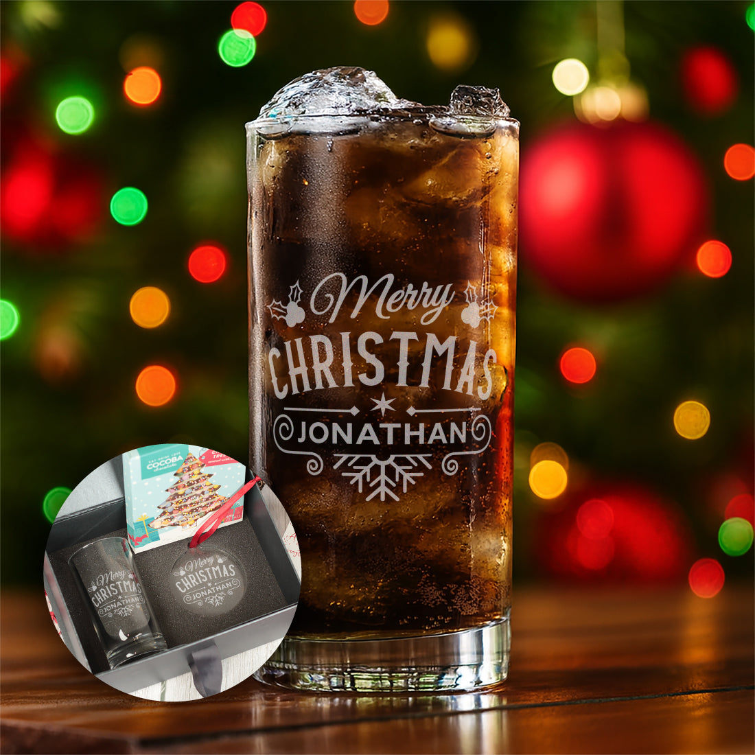 Merry Christmas Message Highball Glass and Coaster Gift Boxed Set