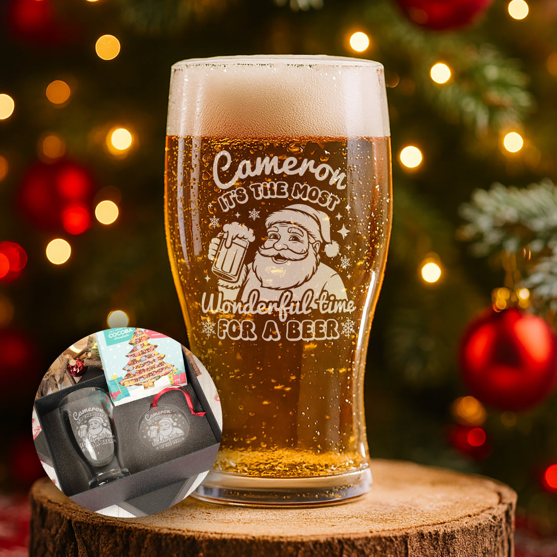 Santa Cheers Christmas Pint Glass and Gift Boxed Set