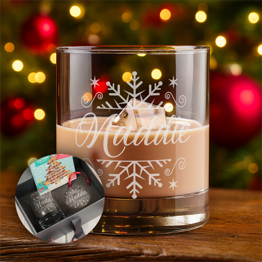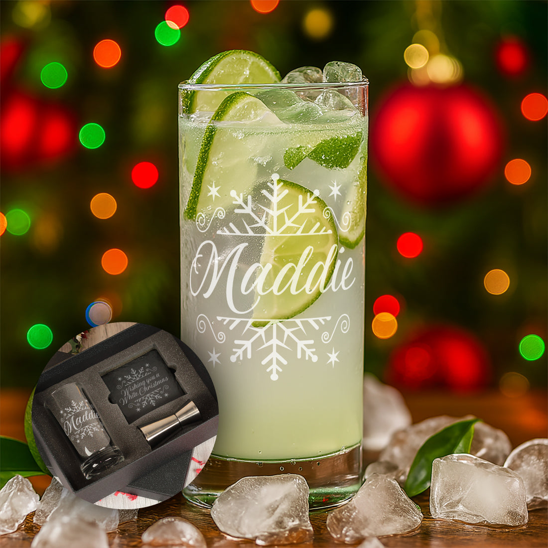 Christmas Snowflake Highball Glass and Decoration Gift Boxed Set