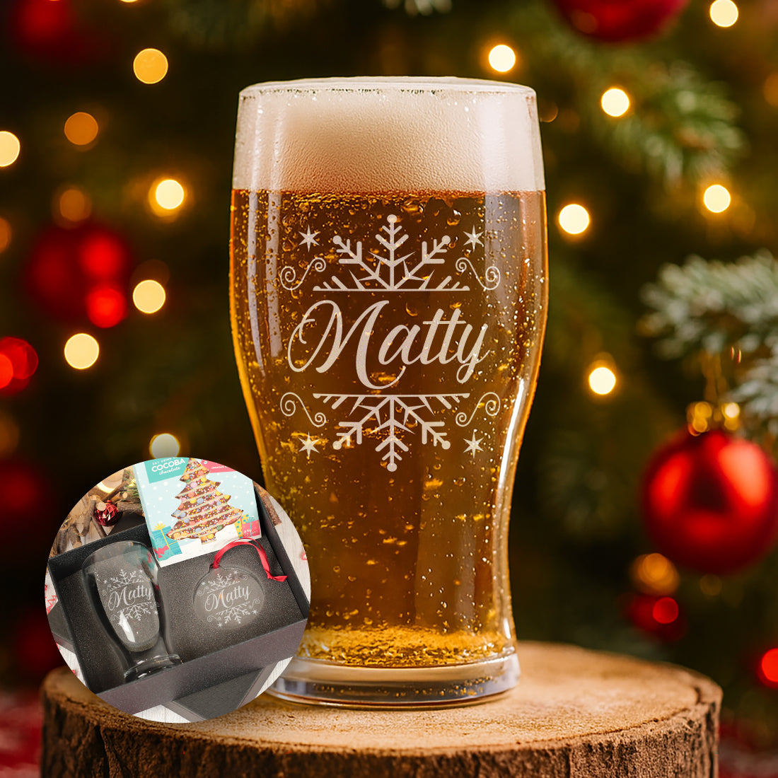 Christmas Snowflake Pint Glass and Gift Boxed Set