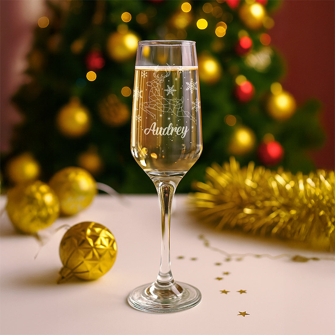 Christmas Reindeer Champagne Flute with Coaster and Decoration Gift Set