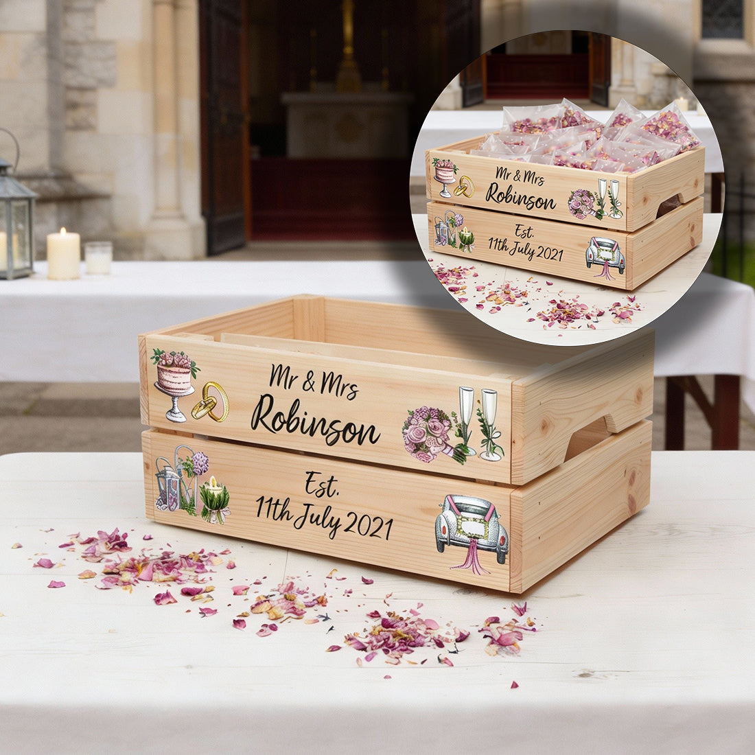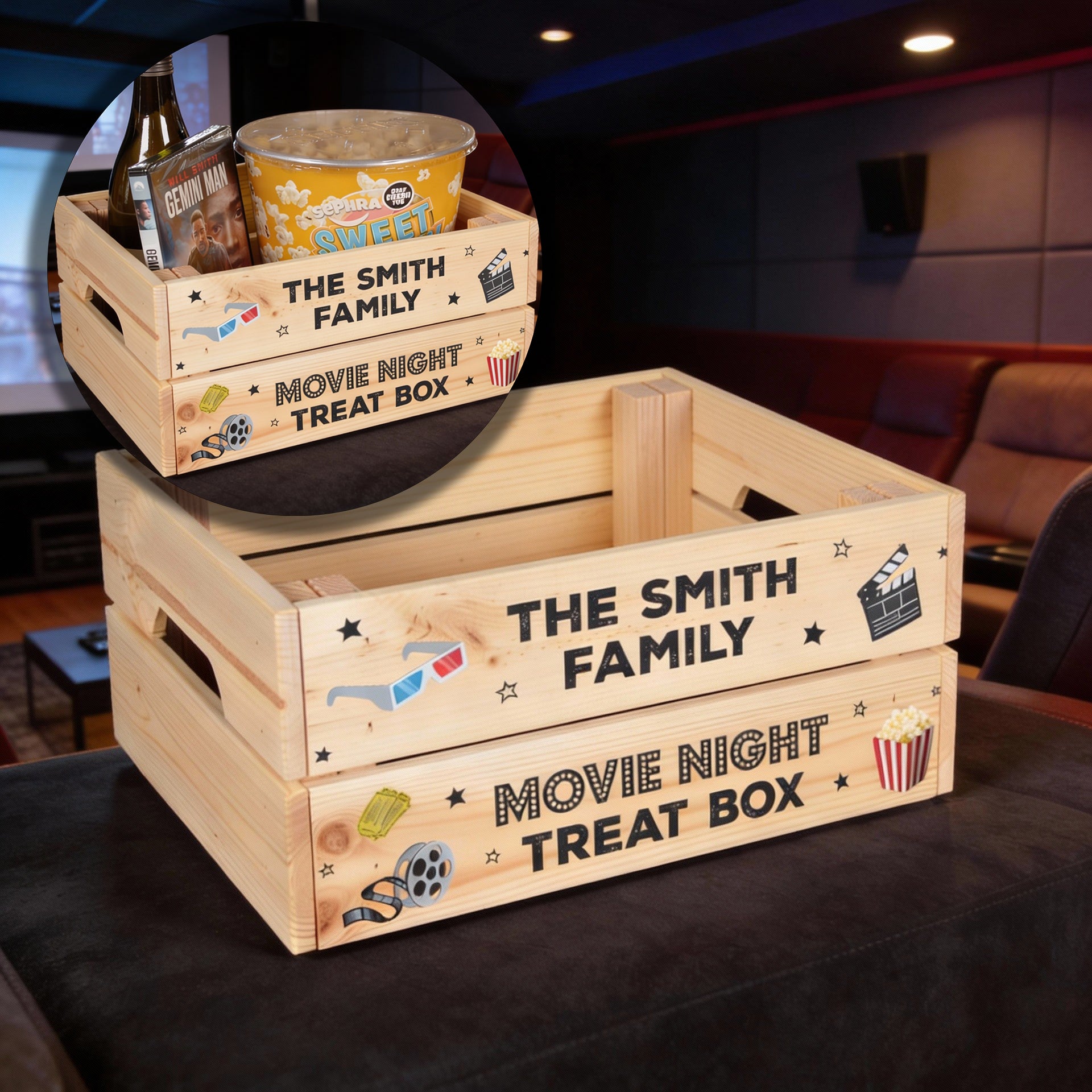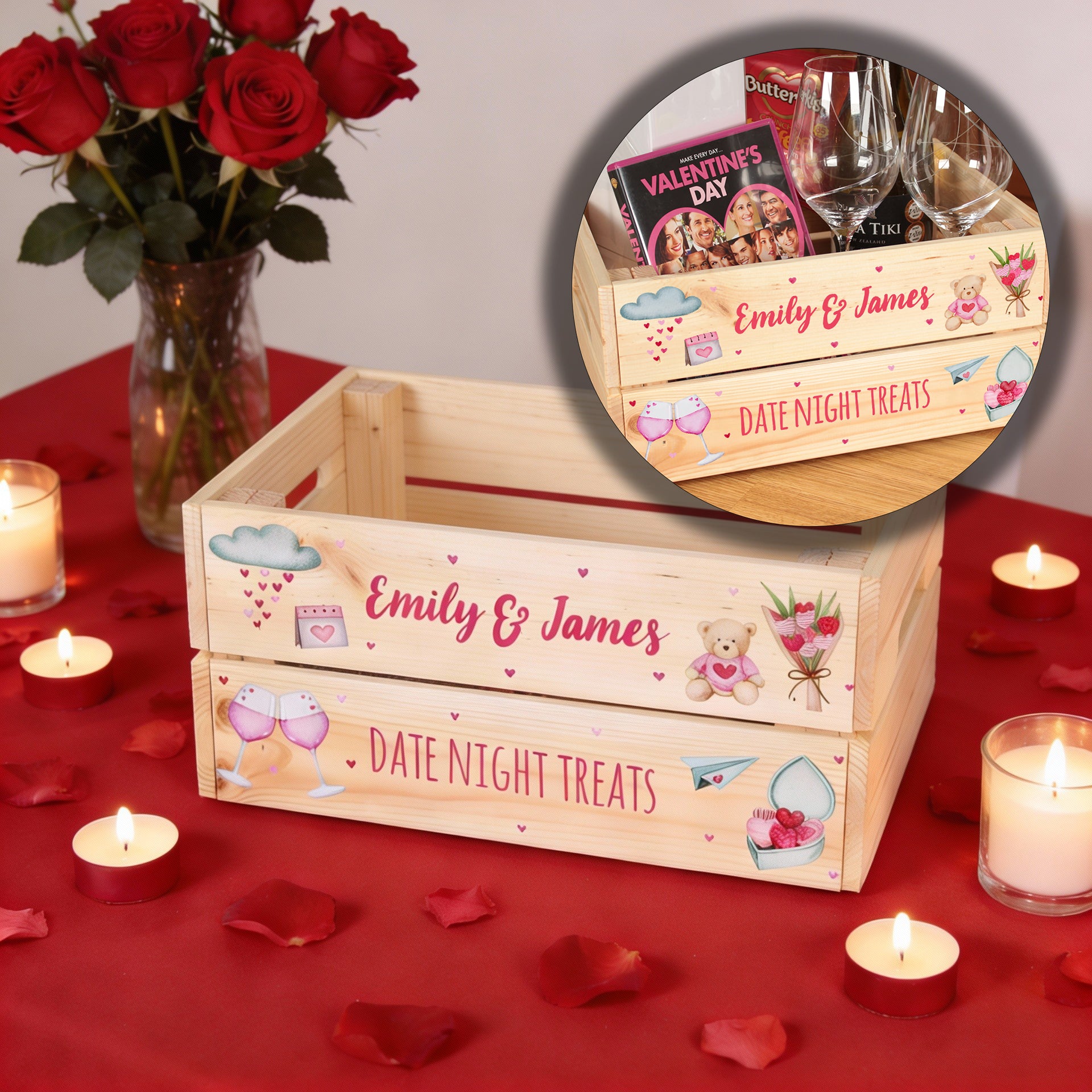 Personalised gift crates ready to be filled with goodies and treats for any occasion. Perfect for gin gifts, coffee gifts, Prosecco gifts and much more. A great alternative to a Christmas Eve box and a perfect sweet treat hamper for Easter and Halloween.