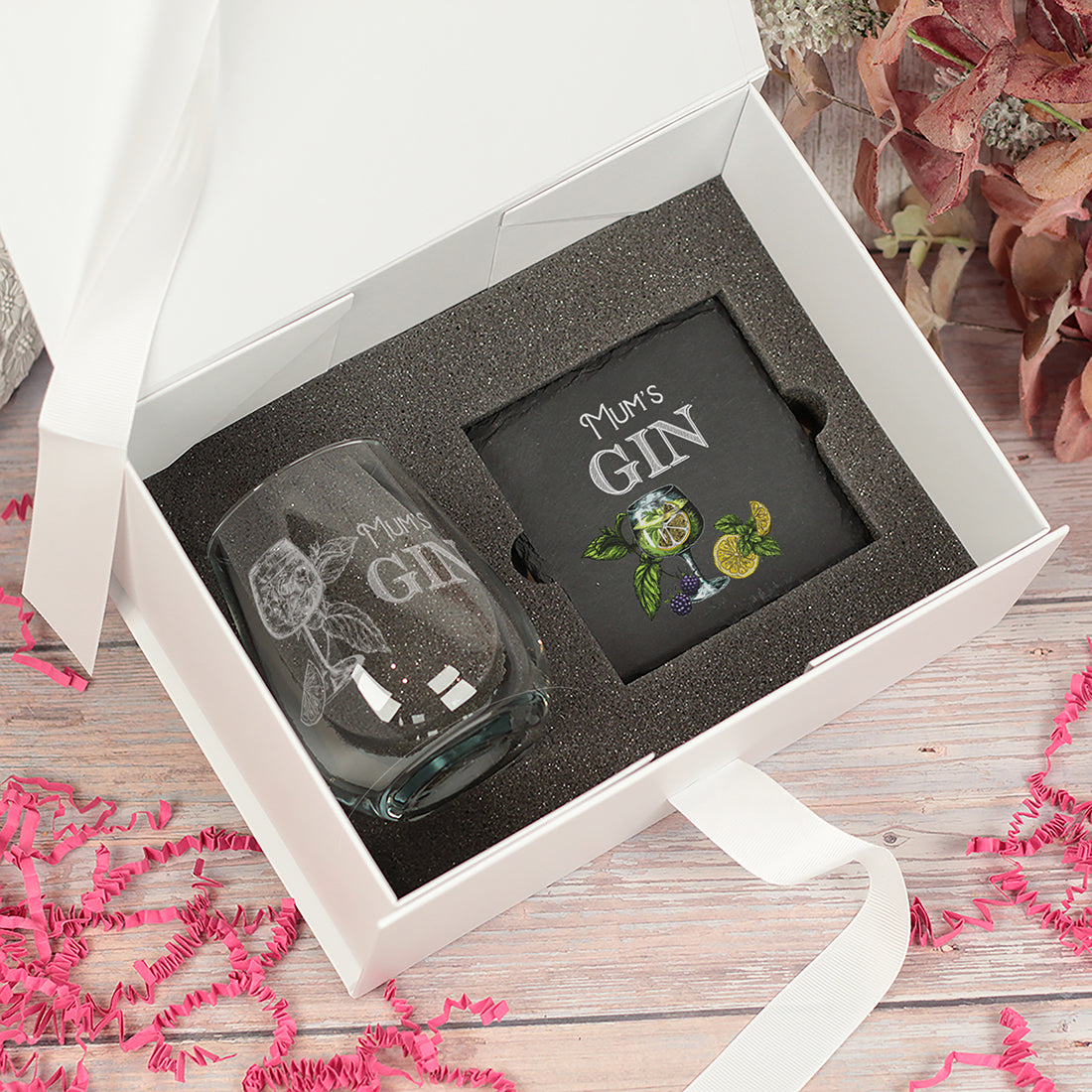 Upgrade your gift with one of our luxury white gift boxes with specialist foam lining to present the glass either on it's own or with a matching personalised coaster for a complete gift.