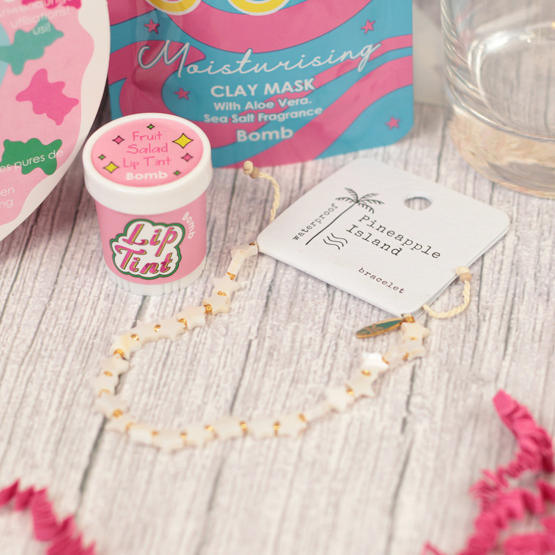• A tinted lip balm in everyone's favourite fruity mix! Give your lips a pop of colour and hydration with a hint of tropic sweetness! A subtle pink tint for a pop of colour in this sweetshop favourite scent!