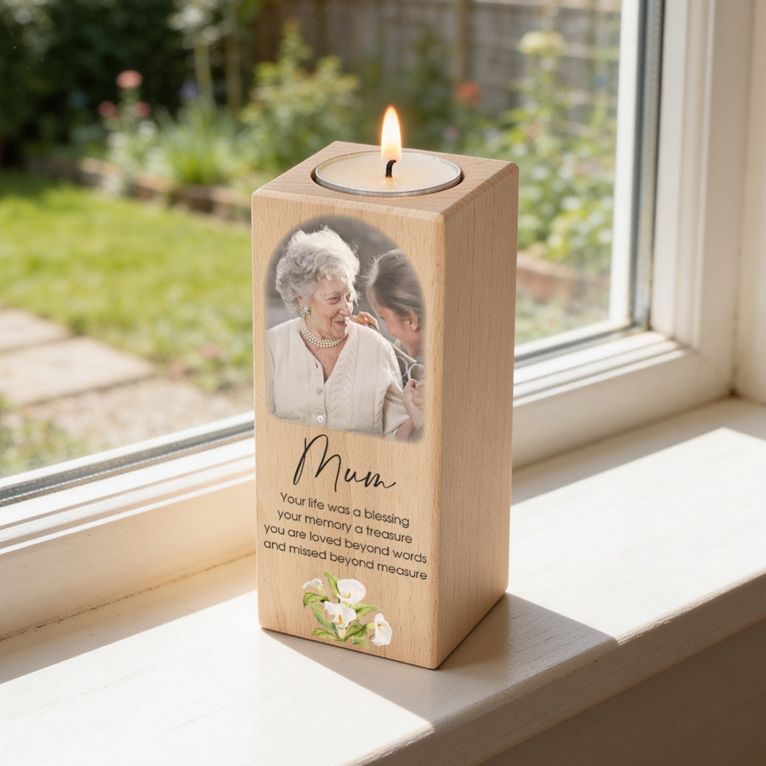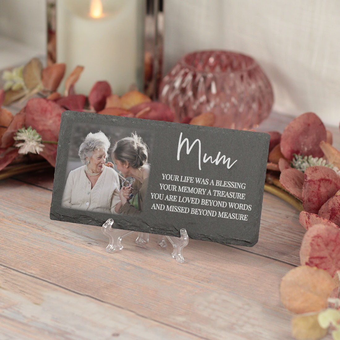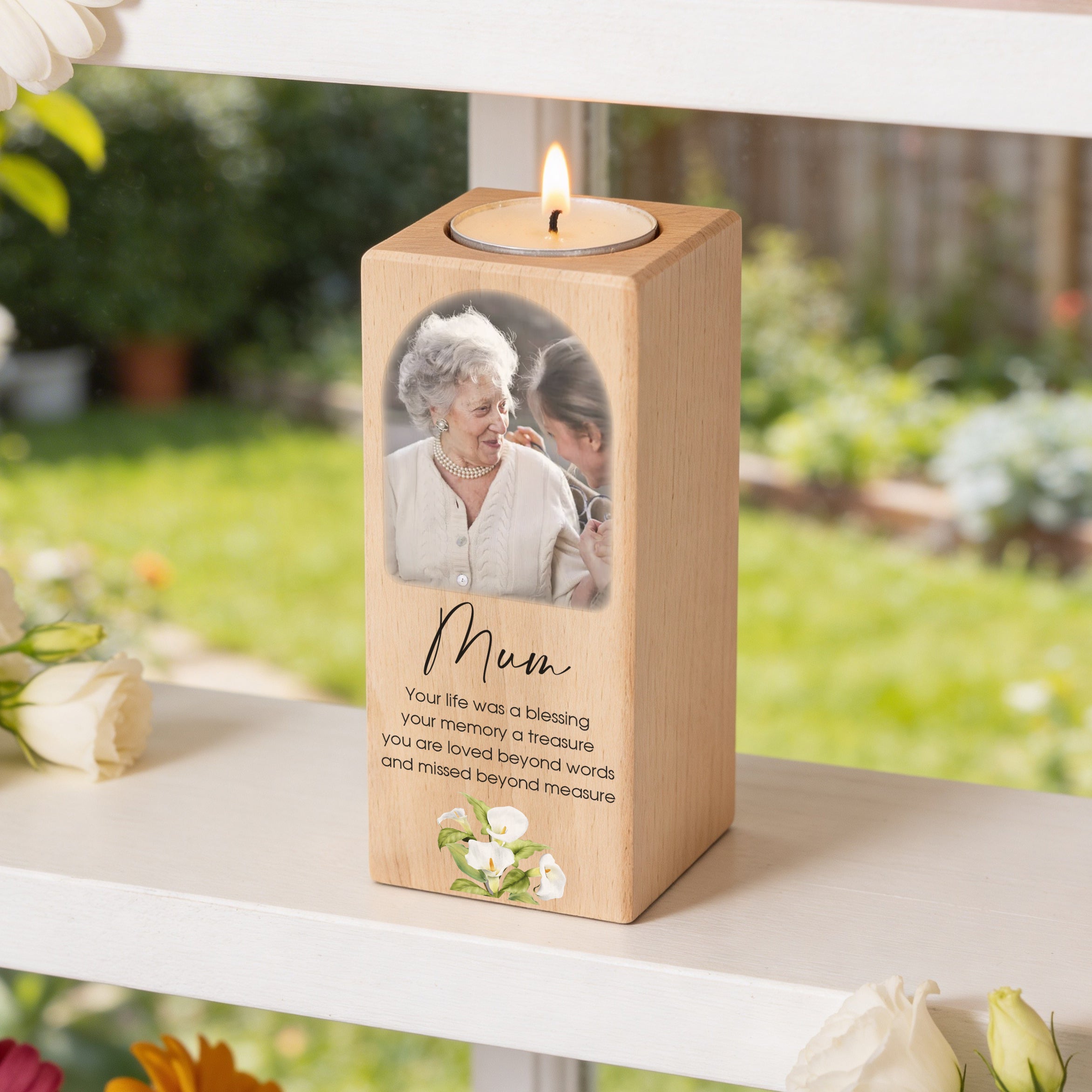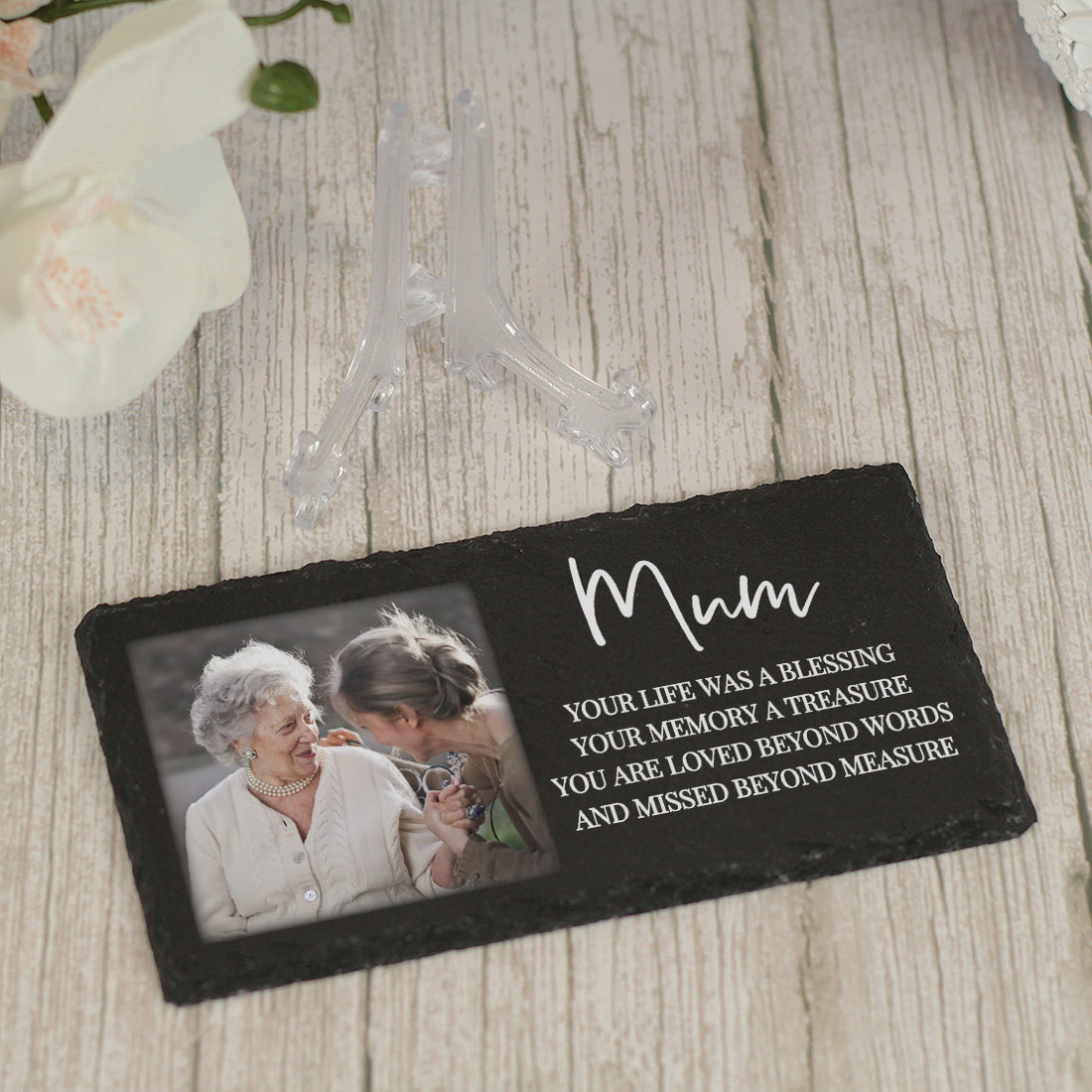 A range of touching condolence gifts to show someone you are thinking of them. A tealight holder personalised with a photo or message to light when you are thinking of them or a mirrored sign to put in their favourite spot in the garden are lovely ways to remember a loved one. A funeral guest book is a way to capture stories and thoughts from friends and family.