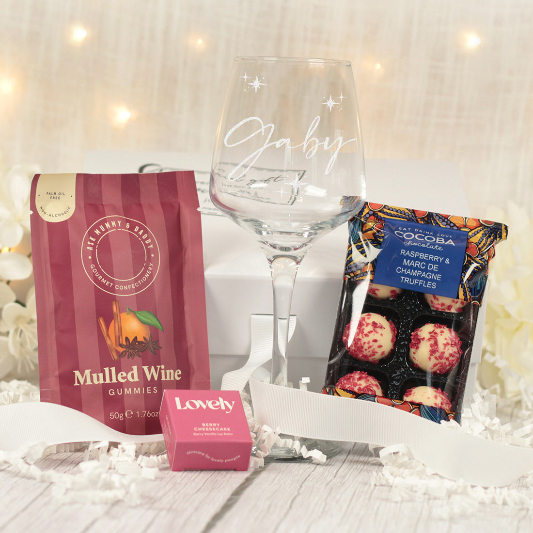 Every set contains one of our signature pieces of personalised glassware alongside a wide selection of added gifts. From luxurious pamper sets for a special Birthday gift to sweet treats and aesthetic colour selections there's sure to be a special gift for that special occasion or 'just because'.
