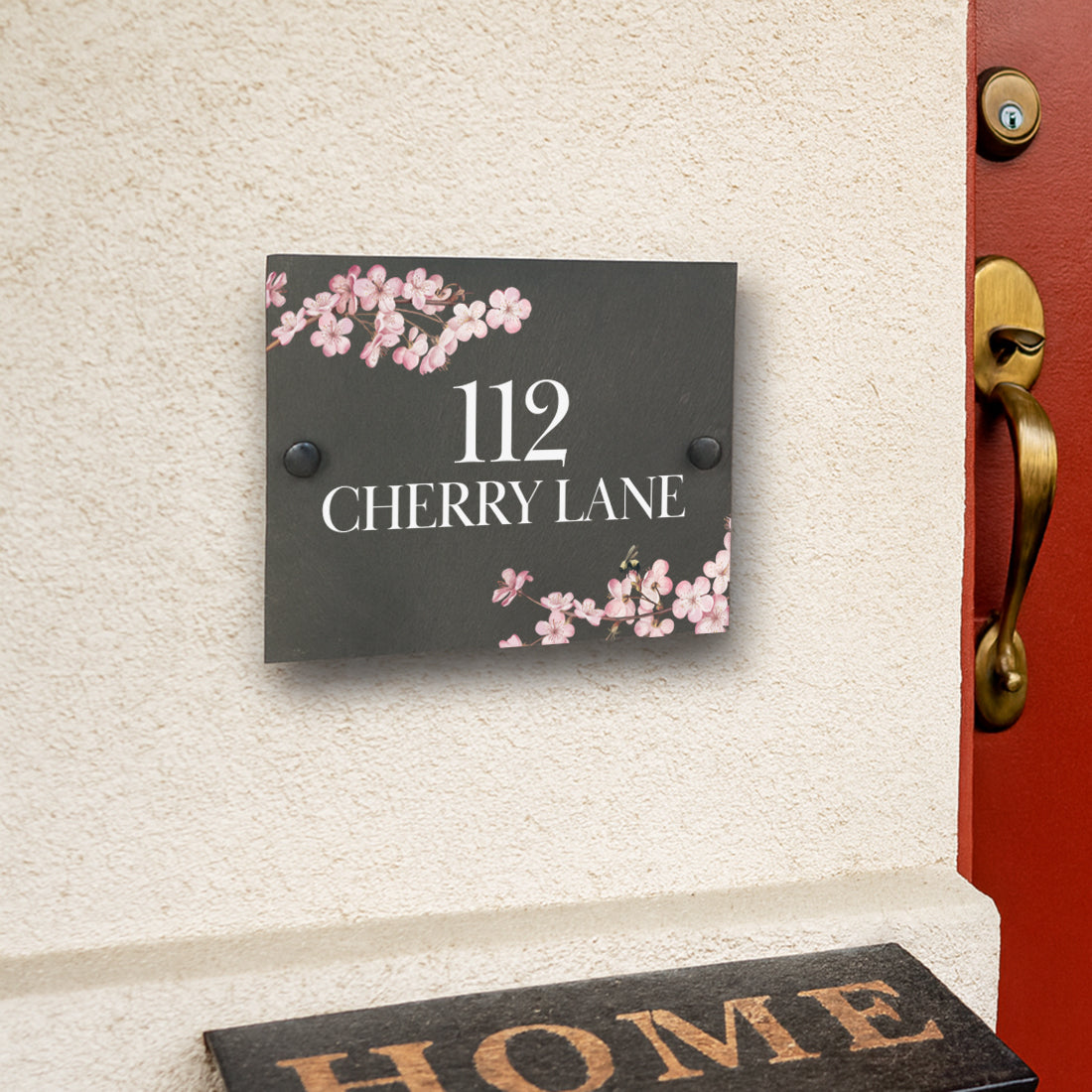 Cherry Blossom Slate House Number or Name Wall Mounted Sign