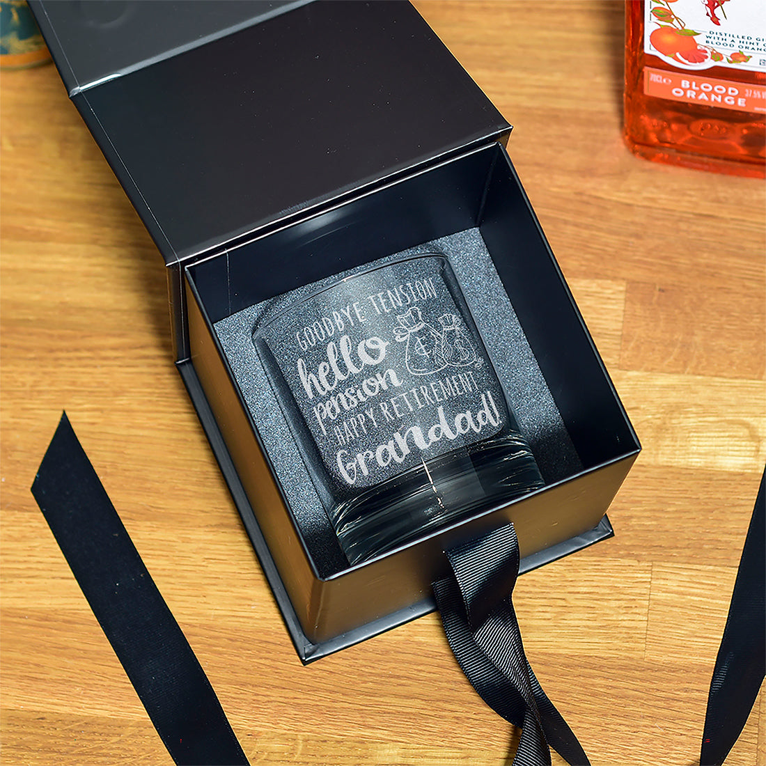 Raise a glass to retirement with this stunning personalised whiskey tumbler!