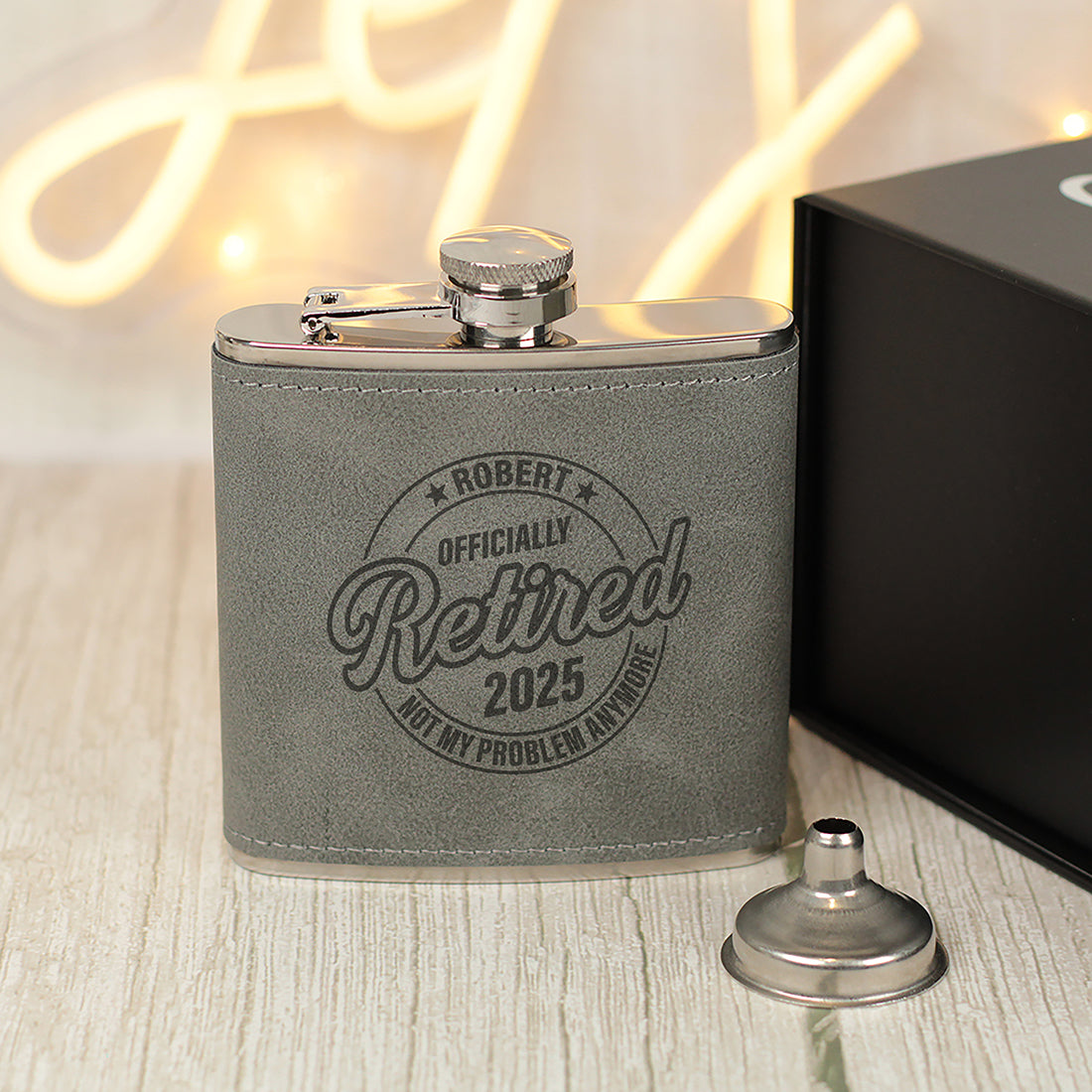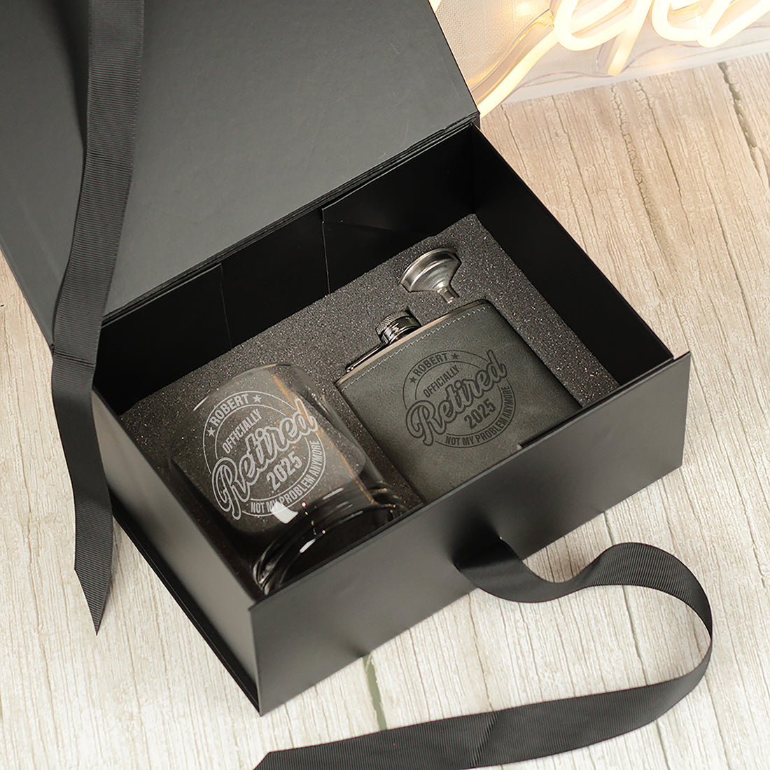 This stunning stainless steel Hip Flask and matching glass gift set is a stylish gift to celebrate a retirement.