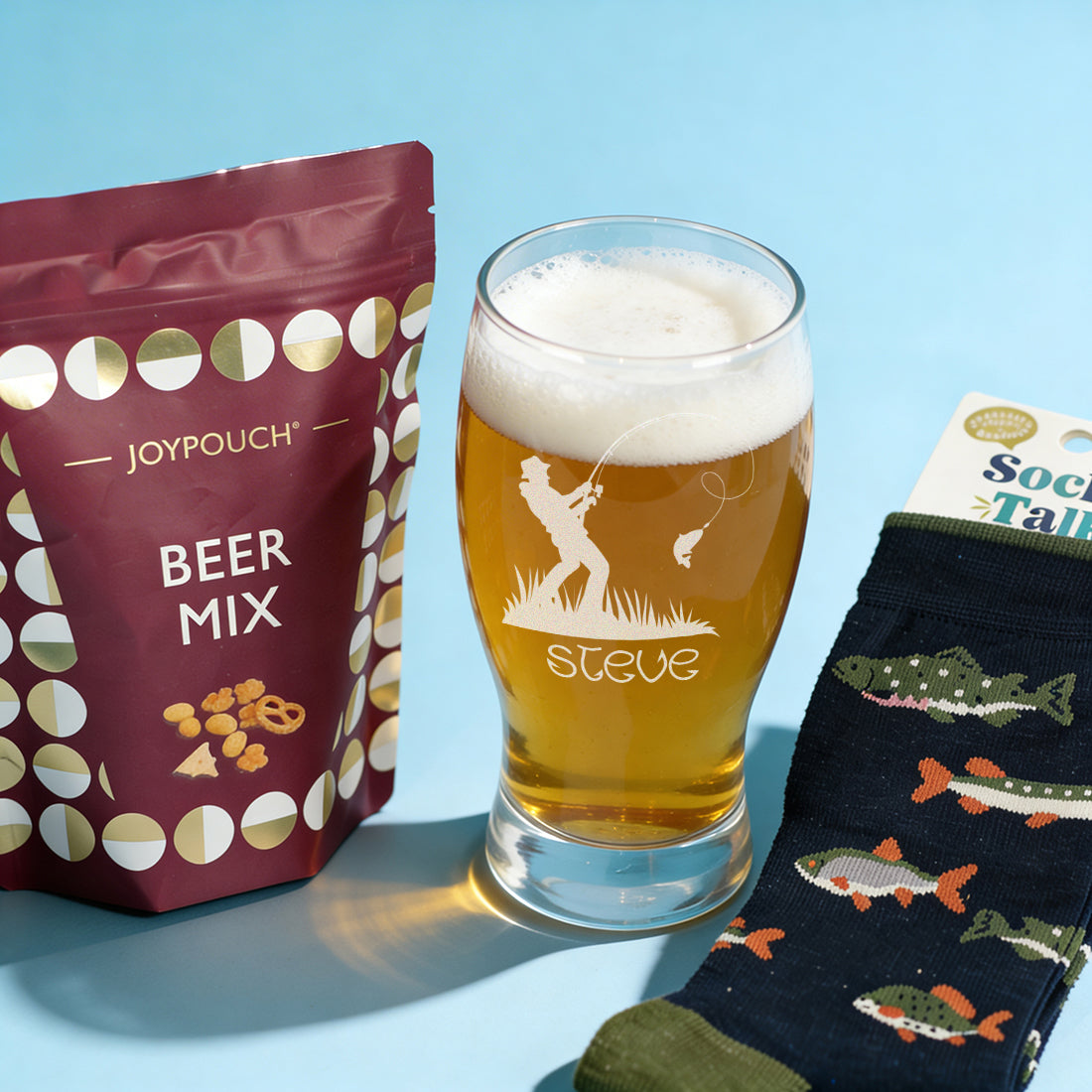 Fishing Pint Glass, Socks and Snacks gift set