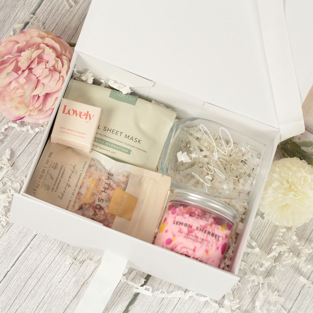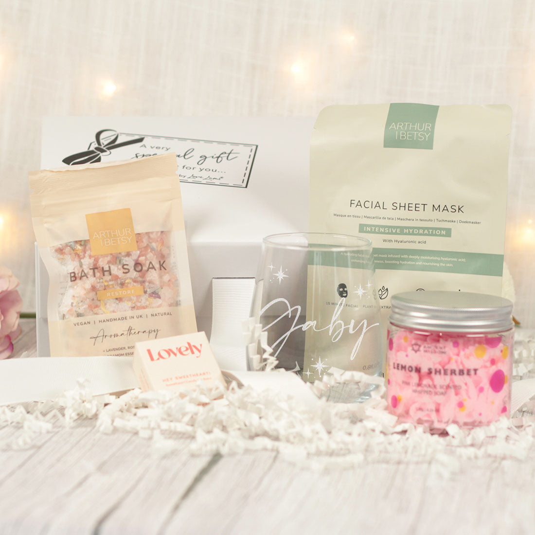 Personalised Stemless Glass Pretty in Pink Pamper Gift Box