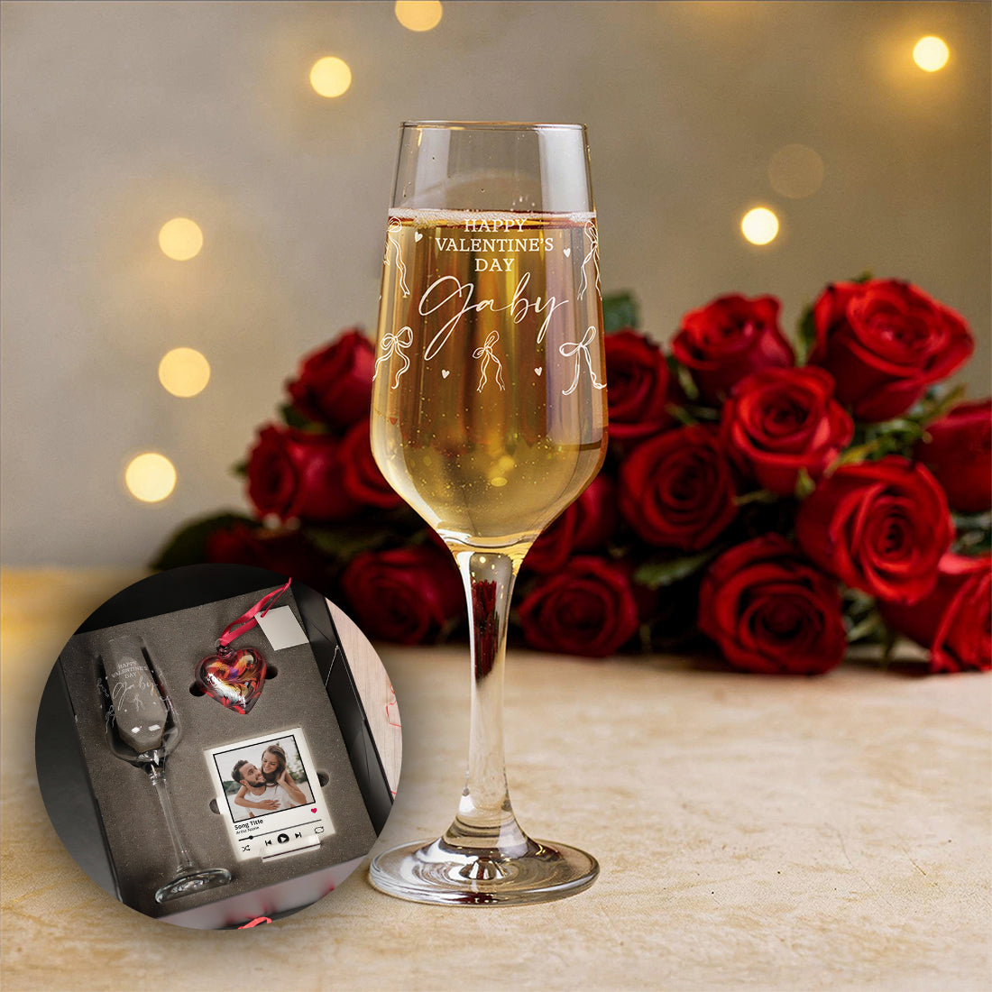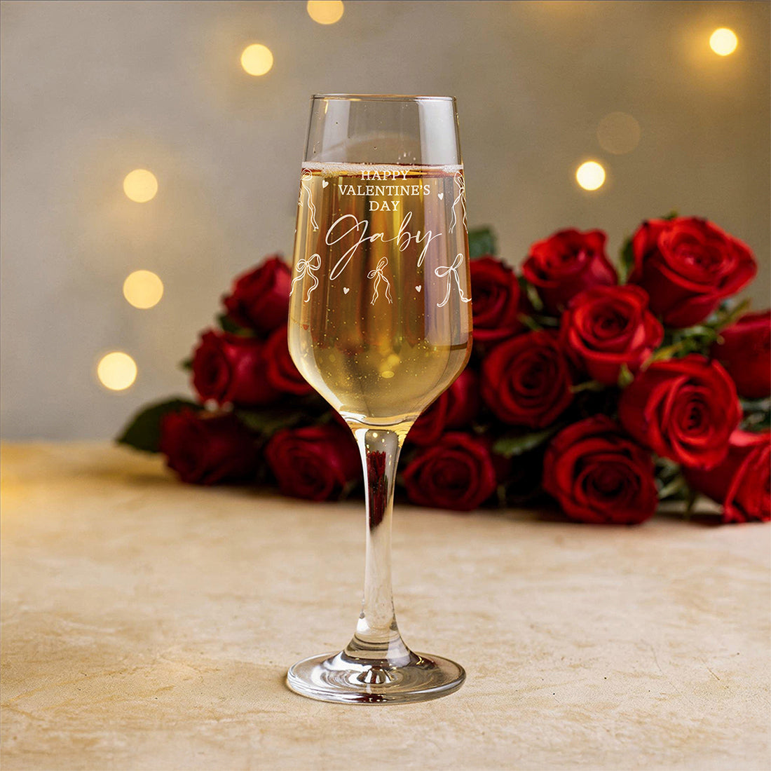 This engraved glass Champagne Flute is a great gift keepsake gift to celebrate Valentine's Day with your partner.