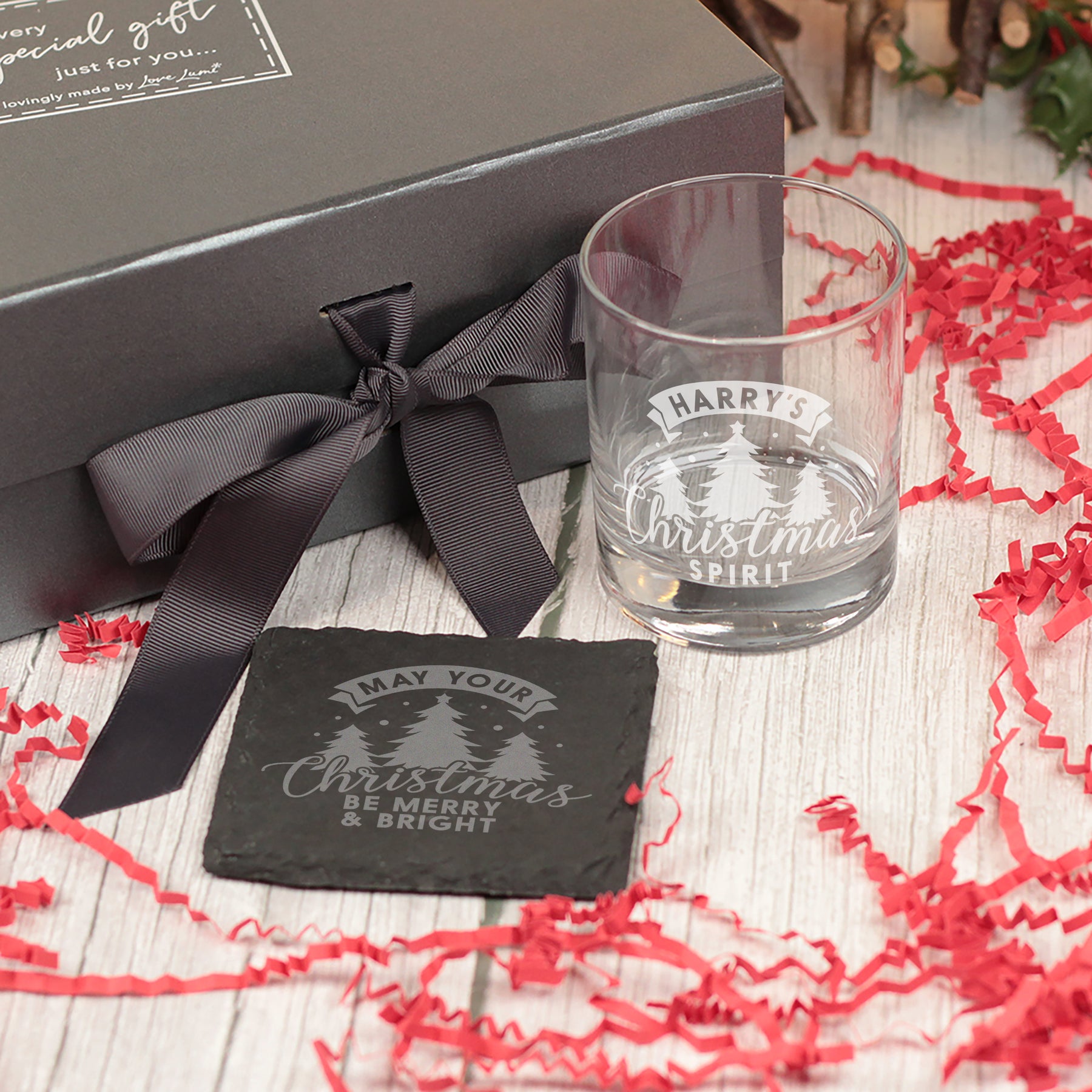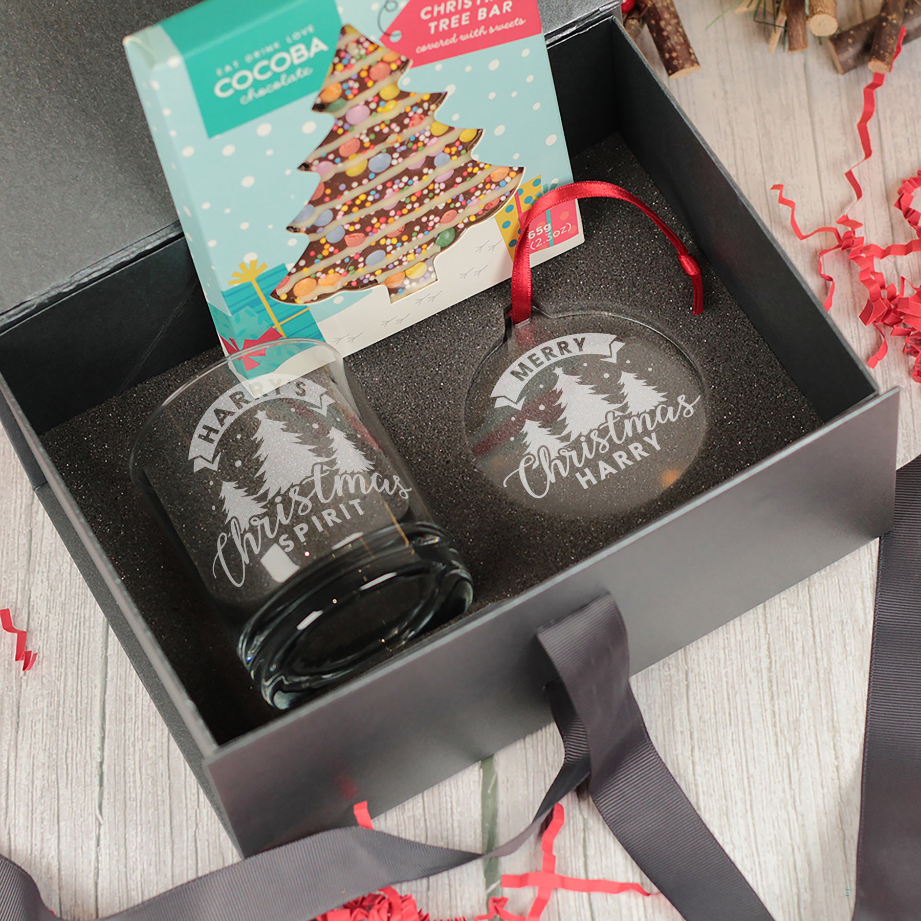 • Gift boxed with a Slate Coaster and Chocolate Christmas Tree